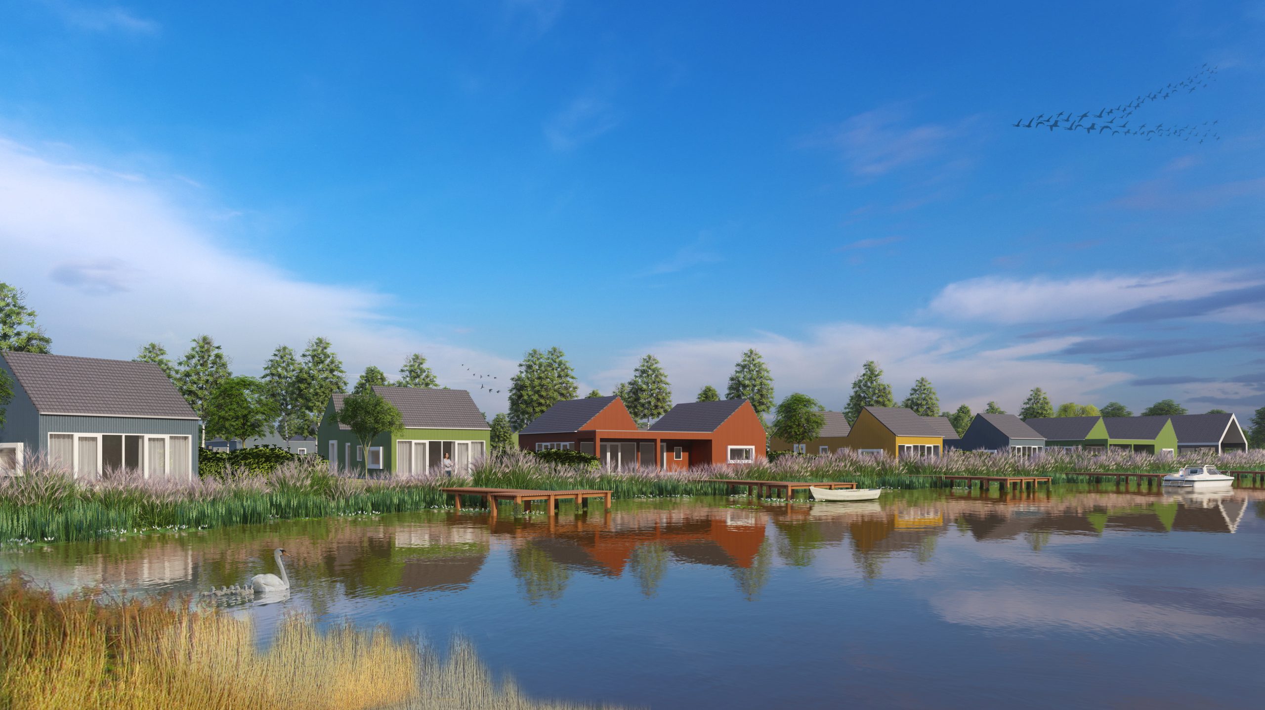 De markante Hoogtij woning heeft een woonoppervlak van 105m2. De basiswoning telt drie slaapkamers, een ruime woonkamer met open keuken, een bijkeuken en een badkamer met optioneel een tweede toilet.